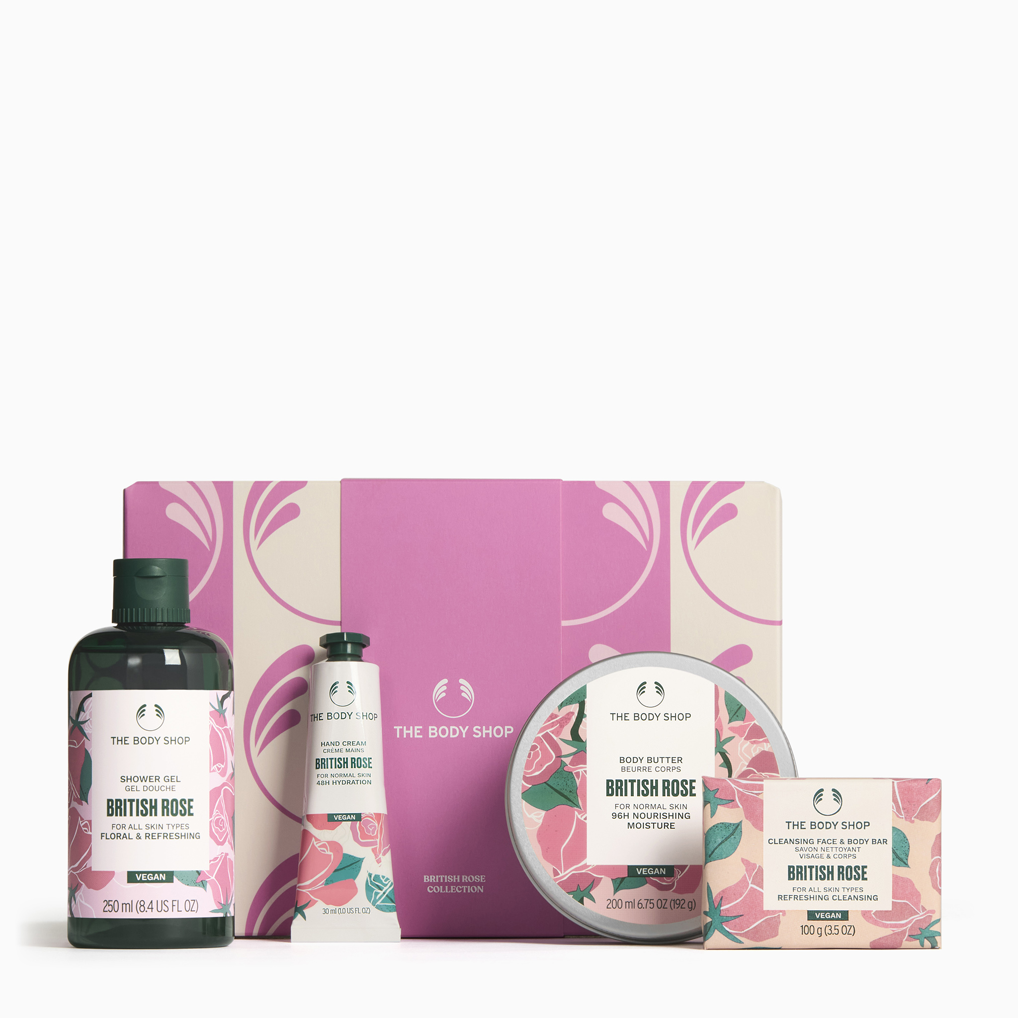 Denne gaveæske er perfekt til blomsterelskeren. Den indeholder en cremet Body Butter, beriget med Community Fair Trade-sheasmør fra Ghana, som hjælper med at nære kroppen og efterlader huden blød og velplejet. Gaveæsken indeholder også en Shower Gel som giver et let skum, en rensende sæbe til ansigt og krop samt en fugtgivende håndcreme, der hjælper med at holde hænderne bløde, glatte og beskyttet mod tørhed – og efterlader huden med en let duft af sommerens roser.